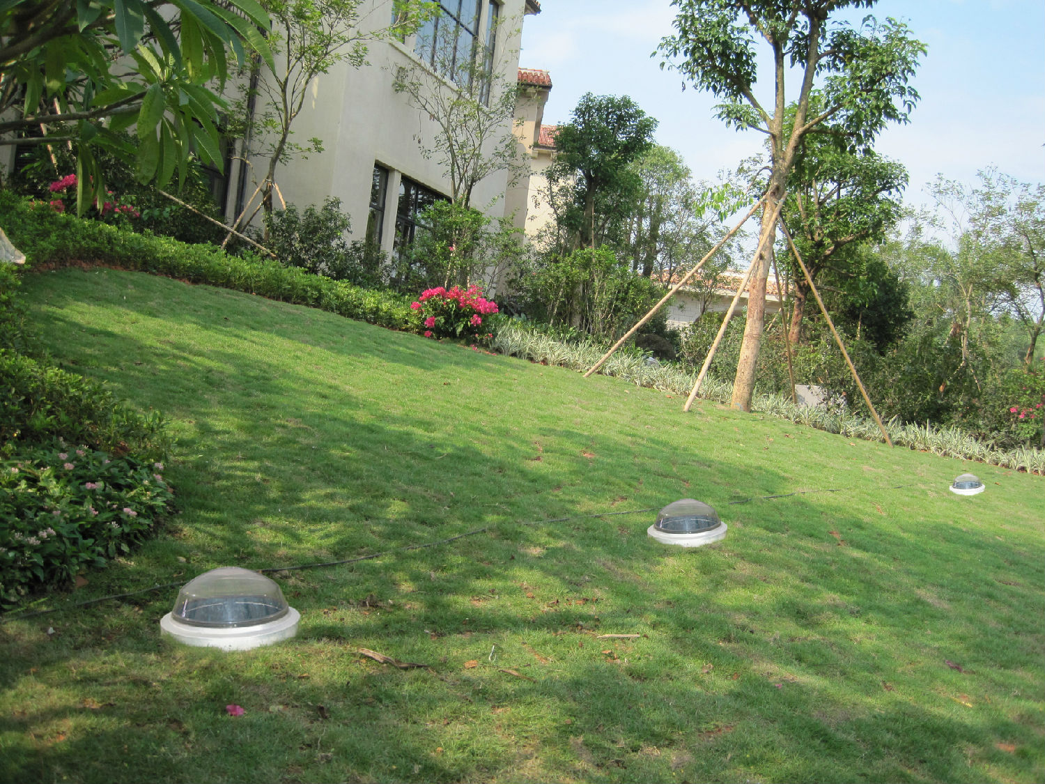完美地與草坪融為一體的采光罩,既堅(jiān)固又兼有裝飾作用。