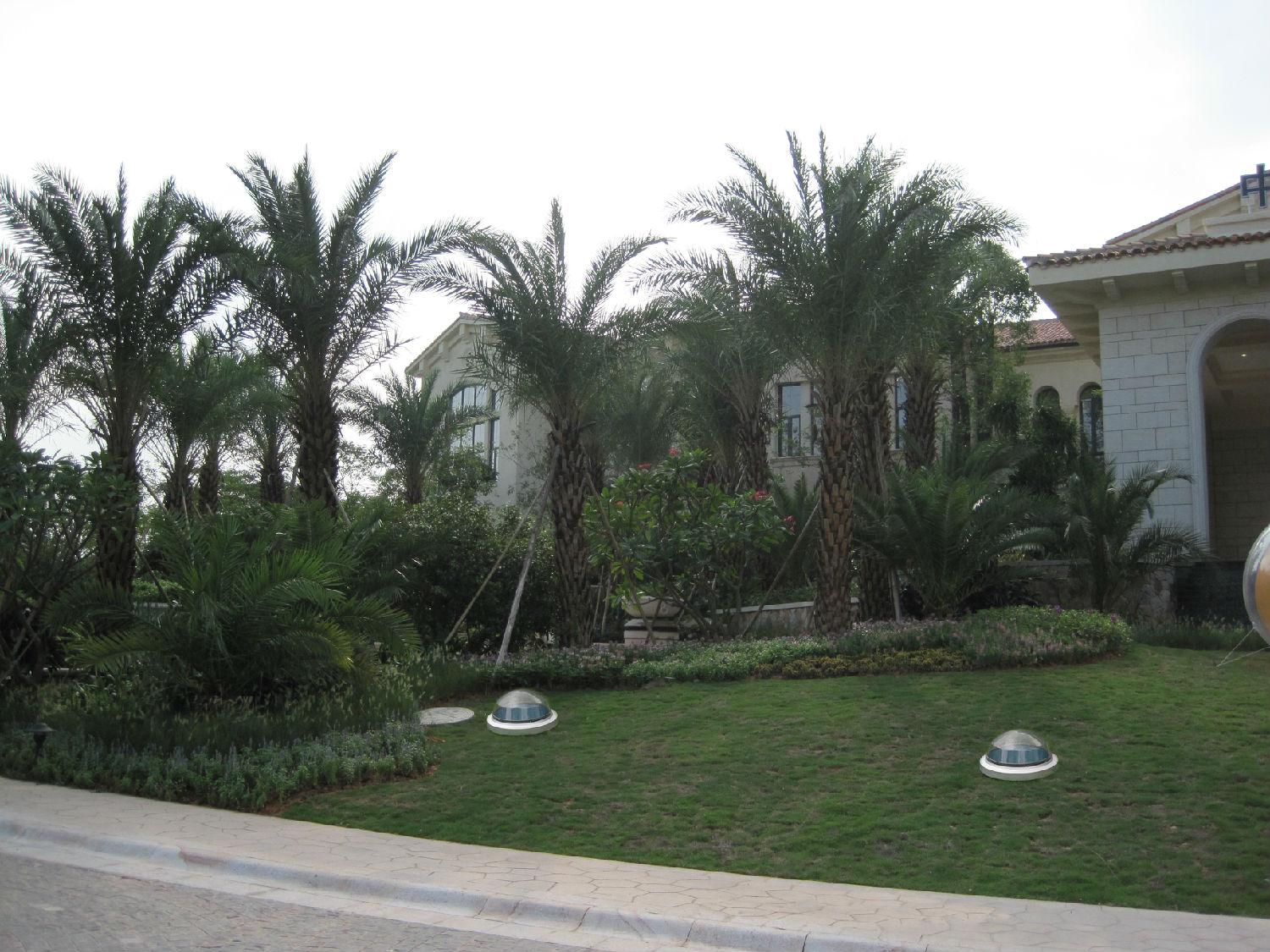 美林湖商業(yè)街的營(yíng)銷中心前面的草地上,可以看見(jiàn)有幾個(gè)低調(diào)又不失優(yōu)雅的采光罩,高透光的類特警盾牌PC材料做成的采光罩旁邊有銀白色的鋁圈裝飾。