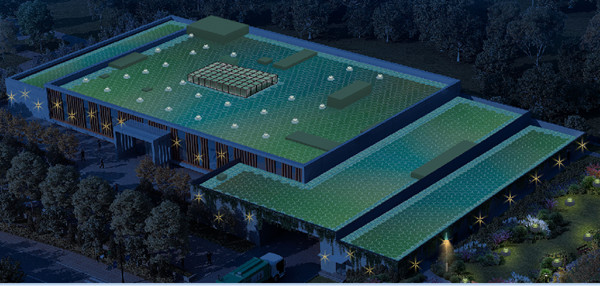 該環(huán)衛(wèi)設施項目的屋頂,采用光能寶盒發(fā)電系統(tǒng),安裝面積約2062㎡,裝機容量約322度電;每天發(fā)電量約1320度電,每年發(fā)電量約39萬度電,可解決項目大部分電器設備用電問題。白天發(fā)電,夜間還能發(fā)出五顏六色的景觀亮化效果,且還能增加建筑隔熱保溫性能。